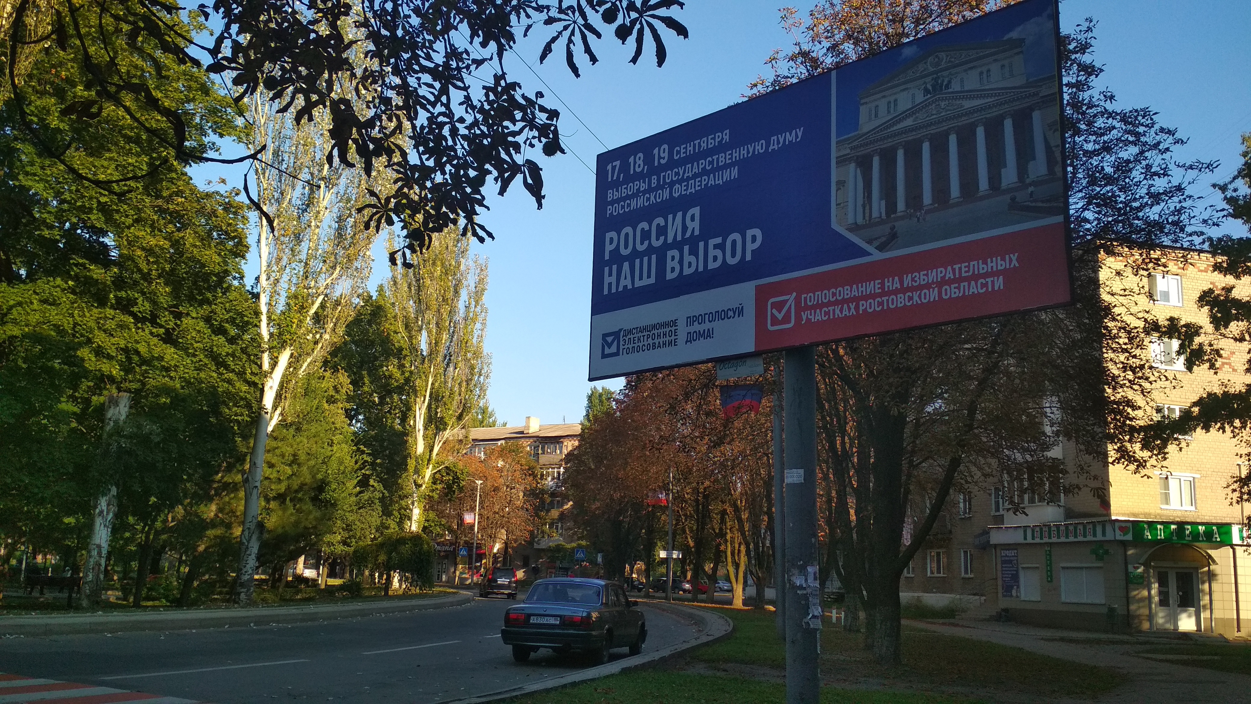 В самопровозглашенных республиках совсем не было предвыборной политической борьбы. И даже политической рекламы толком не было. В Донецке сейчас обилие билбордов с призывом голосовать дистанционно или ехать на выборы в Ростовскую область.