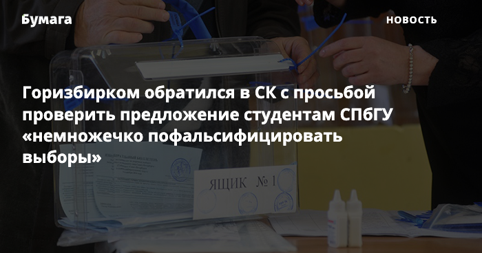 Горизбирком обратился в СК с просьбой проверить предложение студентам СПбГУ «немножечко пофальсифицировать выборы»