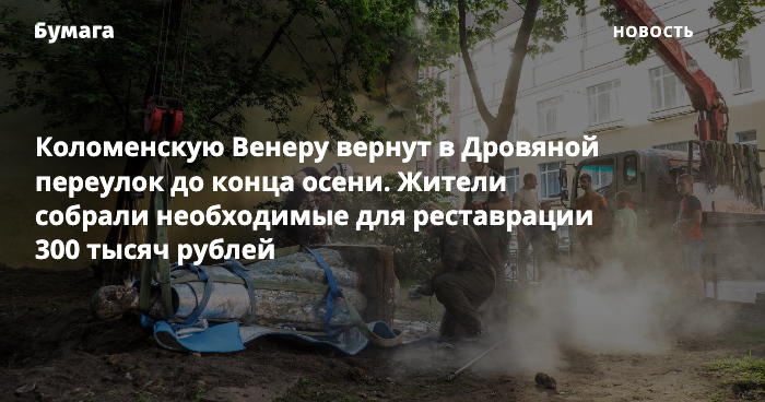 Коломенскую Венеру вернут в Дровяной переулок до конца осени 2021 года, сообщает инстаграм-аккаунт «Добрососедство Коломны».