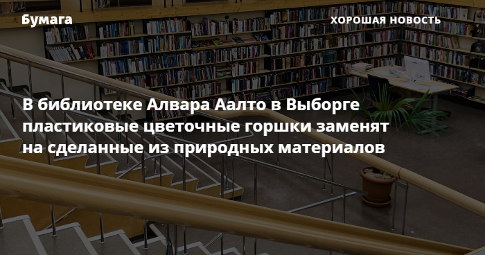 В библиотеке Алвара Аалто в Выборге в честь ее дня рождения пройдет акция «Сад Аалто» — пластиковые цветочные горшки там заменят на сделанные из природных материалов. Об этом сообщает фонд «Зеленый Петербург».