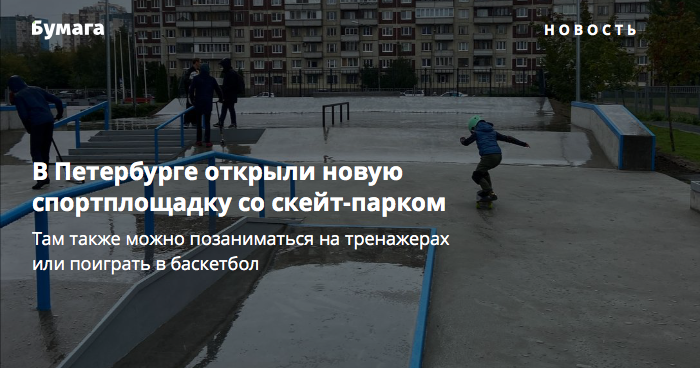Спортивная площадка со скейт-парком появилась у центра водных видов спорта «Невская волна». Об этом в телеграме сообщил вице-губернатор Петербурга Борис Пиотровский.