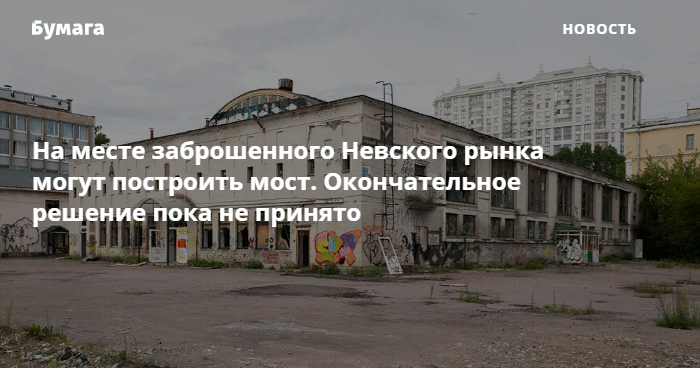 На месте заброшенного Невского рынка на проспекте Обуховской Обороны могут построить Большой Смоленский мост — но окончательное решение еще не принято. Об этом сообщают «РБК» и «Деловой Петербург».