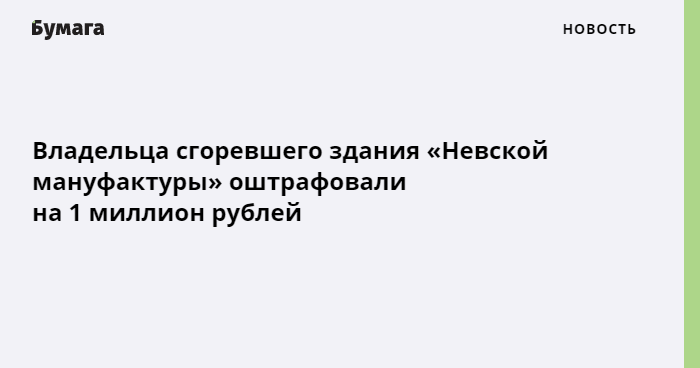 Невский районный суд назначил штраф АО «Невская мануфактура», владельцу сгоревшего комплекса фабричных зданий на Октябрьской набережной.
