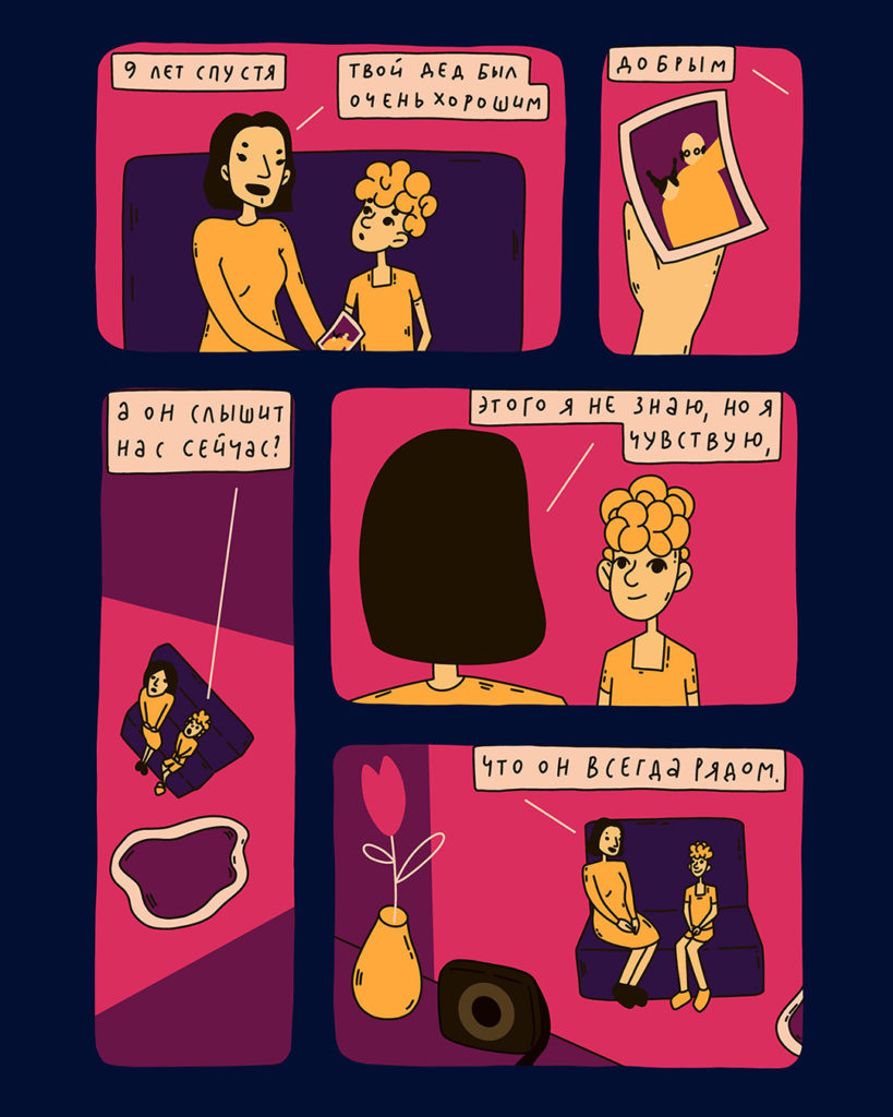 Иллюстраторка Соня Ярымова нарисовала для «Таких дел» комикс о любимом дедушке. Он умер от рака, когда девочке было восемь