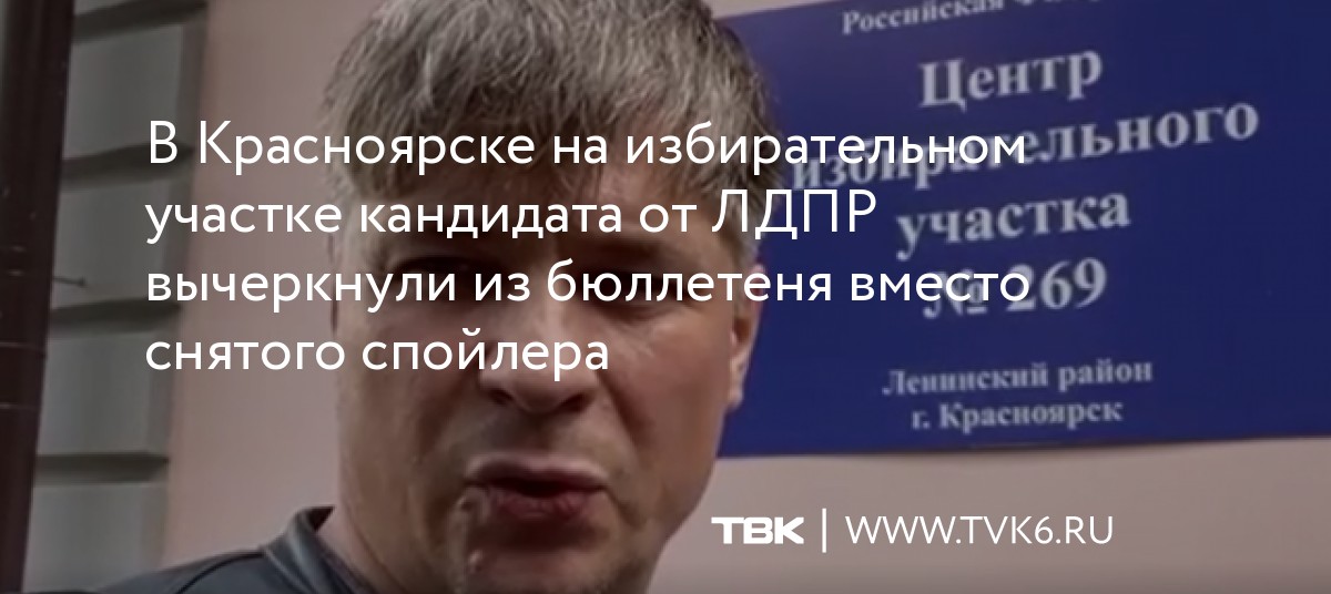 В Красноярске на избирательном участке кандидата от ЛДПР вычеркнули из бюллетеня вместо снятого спойлера