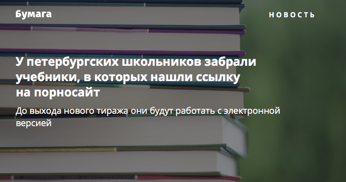 У петербургских школьников забрали учебники, в которых нашли ссылку на порносайт
