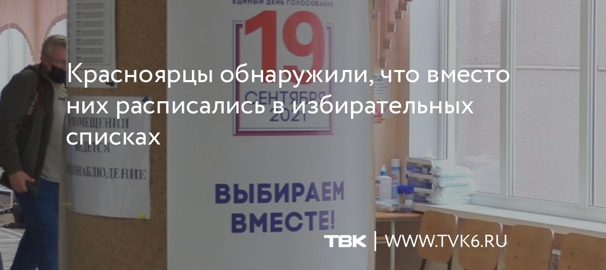 В редакцию «ТВК Красноярск» обратился красноярец Захар. Он рассказал, что пришел на избирательный участок №269 в Ленинском районе и обнаружил: вместо него в списке расписался кто-то другой.