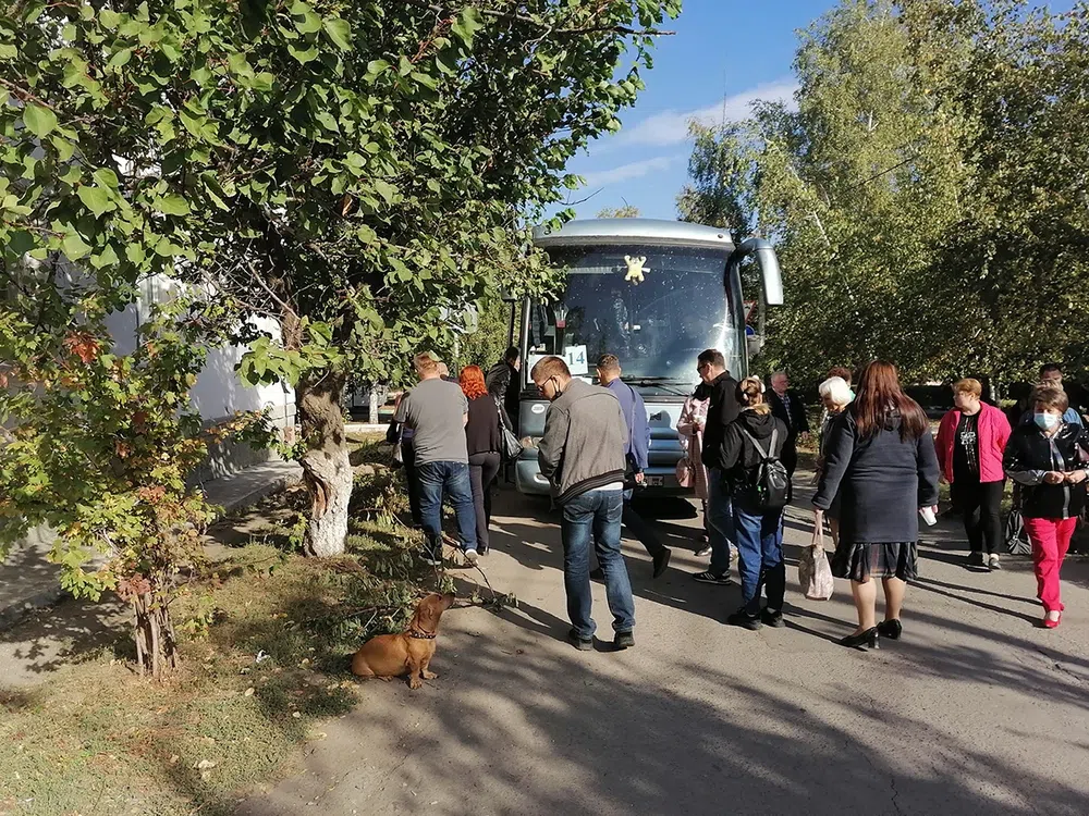— Вчера была первая, сегодня вот привез, и завтра повезем. Ну как добровольно… Эти вот, — Женя кивает в сторону пассажиров автобуса, — администрация города. Им приказали ехать голосовать в РФ, у меня списки, и на границу списки передали. Некоторые сами хотят прокатиться — почему нет.