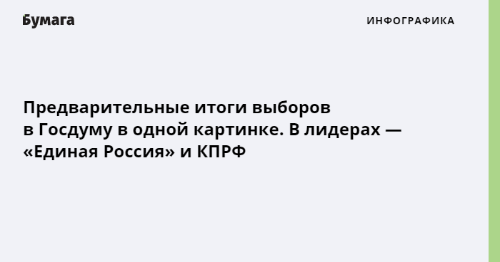 В России завершились трехдневные выборы депутатов Госдумы VIII созыва. Окончательные итоги голосования должны подвести в пятницу, 24 сентября. «Бумага» показывает предварительные результаты в одной картинке.