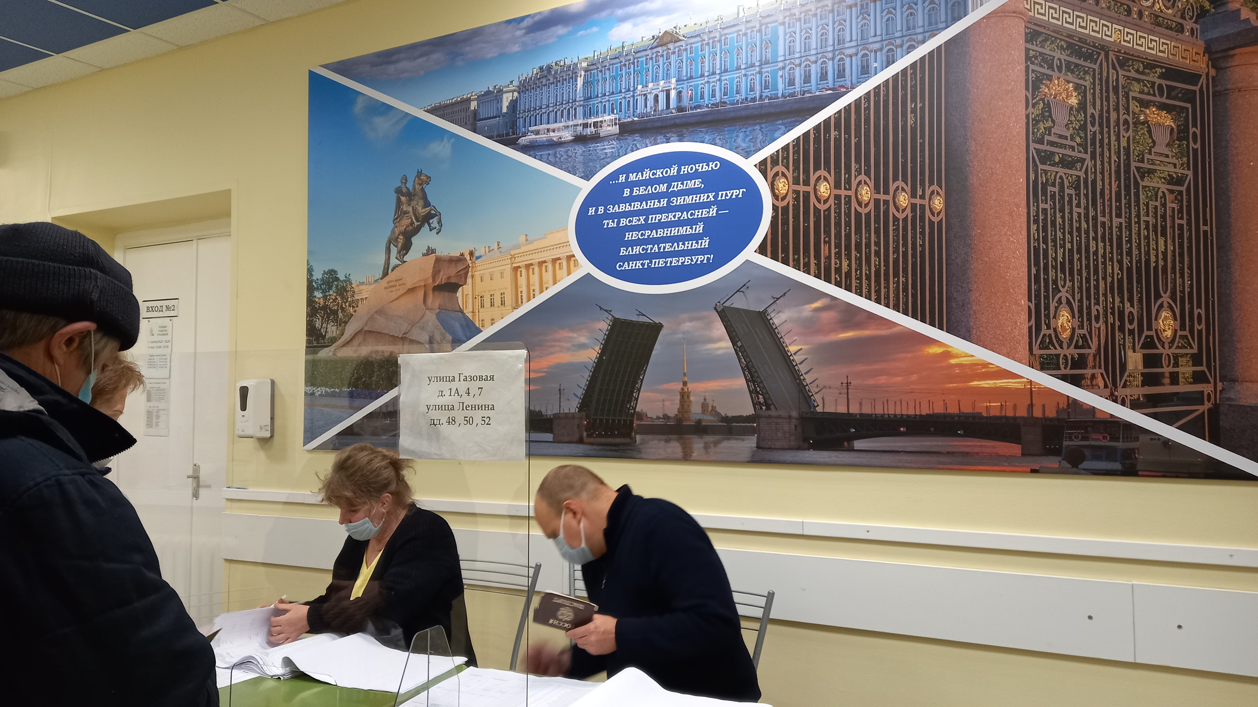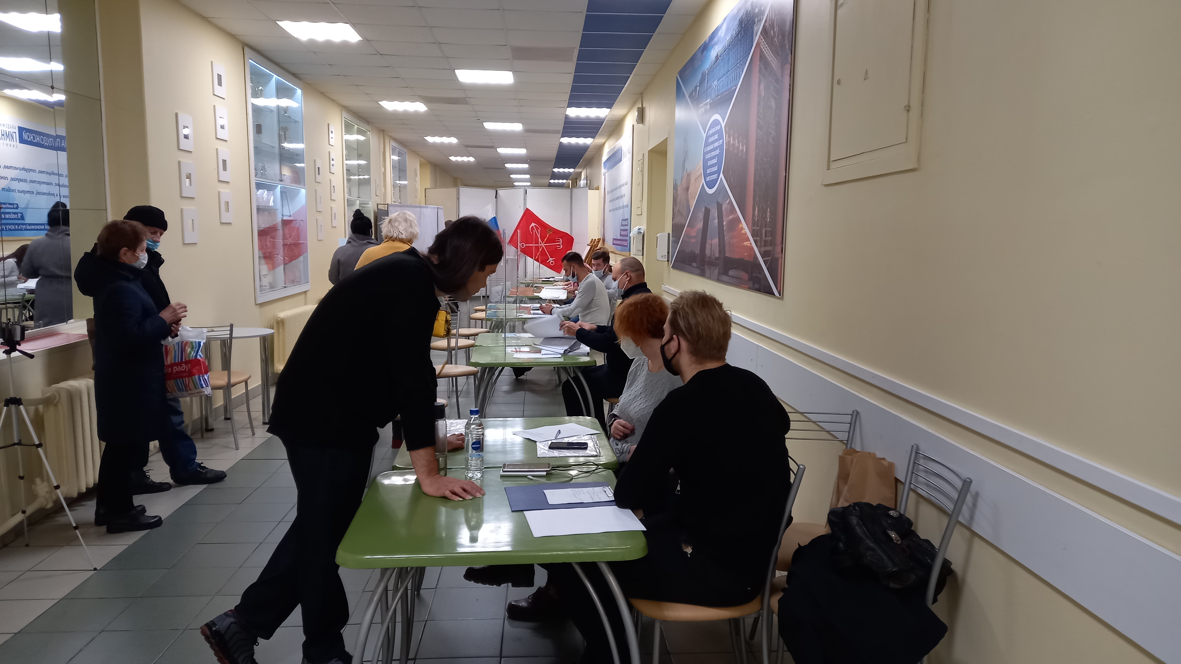 Корреспондент Север.Реалии побывал на нескольких участках для голосования. Два из них находились в одном и том же помещении 56-й гимназии в Петроградском районе. Независимый наблюдатель Евгений Новиков рассказал, что на его участке 1645 все на удивление спокойно.