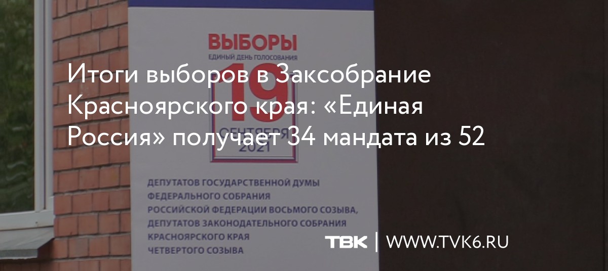 Итоги выборов в Заксобрание Красноярского края: «Единая Россия» получает 34 мандата из 52