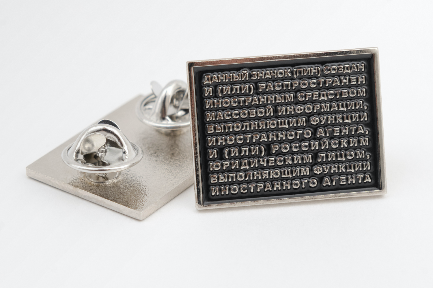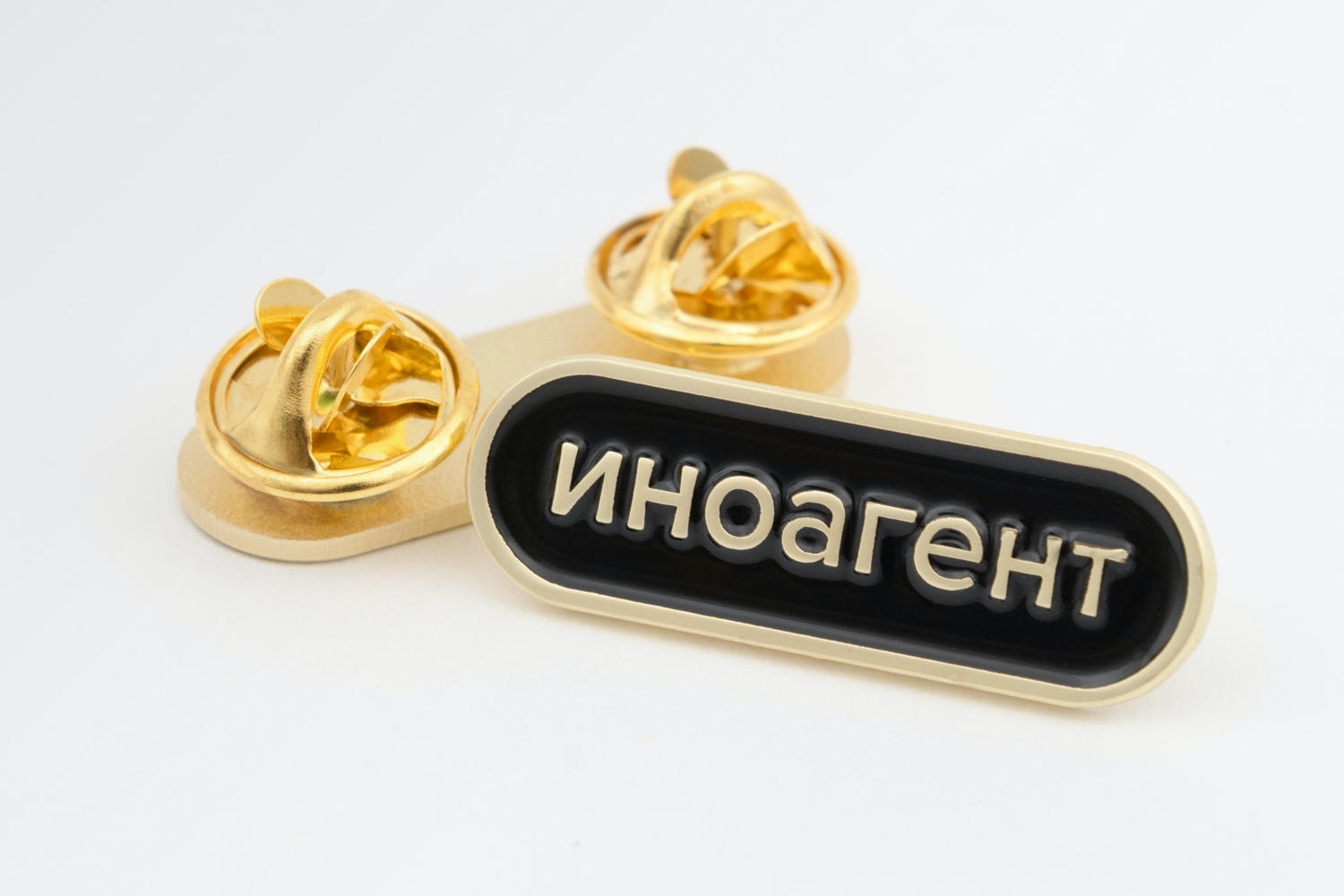 - «Иноагент» — тут все понятно: можете сами себя объявить «агентом иностранного государства». Пин отлично сочетается с другими вещами из нашей коллекции Foreign Agent Kit (ищите ее в «Магазе»).