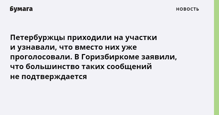 Большинство сообщений о голосовании за других людей в Петербурге не подтверждается. Об этом «Бумаге» сообщили в Горизбиркоме.