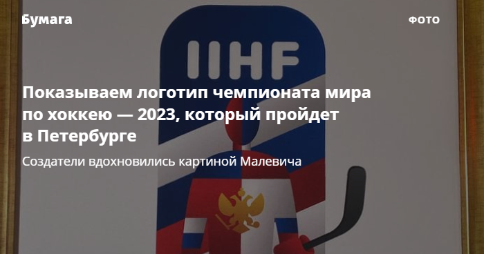 Показываем логотип чемпионата мира по хоккею — 2023, который пройдет в Петербурге. Создатели вдохновились картиной Малевича