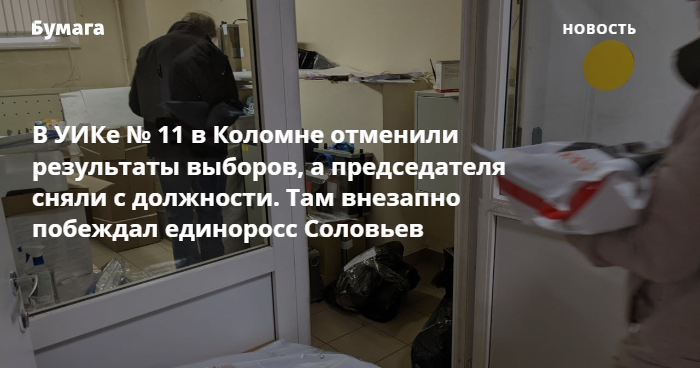 Как писала «Бумага», при подсчете бюллетеней на УИКе № 11 выяснилось, что в урнах их почти на три десятка больше, чем было голосующих. Помимо этого, в урнах нашли множество бюллетеней, идущих подряд, за кандидата Сергея Соловьева от «Единой России» — после этого он стал побеждать кандидата Бориса Вишневского от «Яблока». По предварительным итогам, на УИКе за Соловьева отдали 378 голосов, за Вишневского — 148.