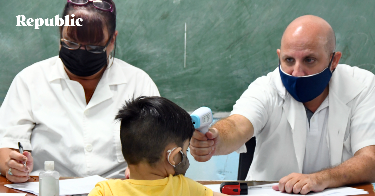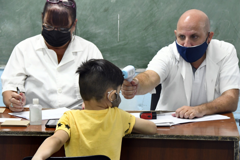 Школа в Гаване. Проверка температуры перед вакцинацией, 16 сентября 2021. Фото: Joaquin Hernandez / Xin Hua / Global Look Press
