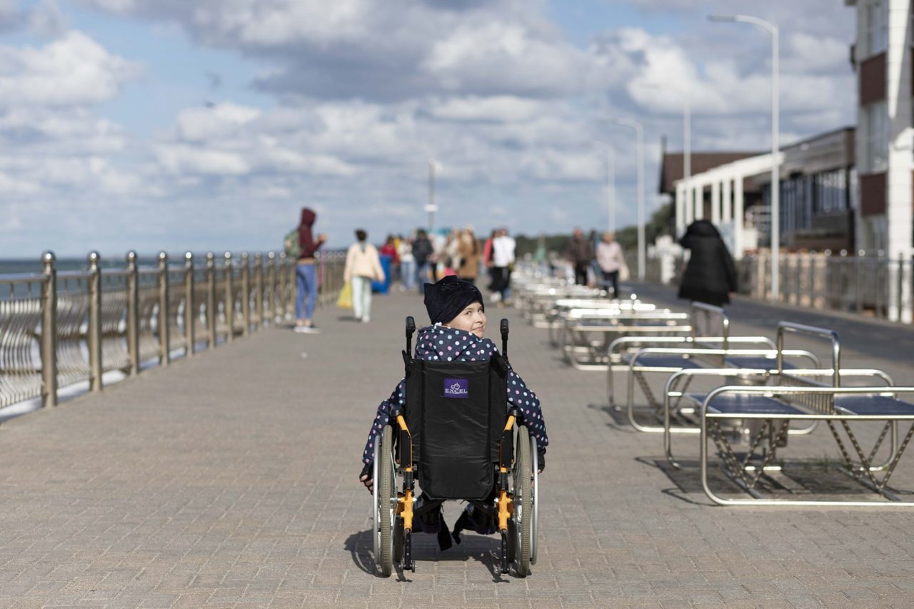 Помогаем Верю в чудо ПомочьЛиза бесстрашно несется по залитому солнцем зеленоградскому променаду на ярко-оранжевой коляске. И хохочет, глядя на наши с фотографом удивленные лица: «Ничего себе скорости». Прогулки у моря — их с мамой Светланой любимое развлечение. После тесной квартирки в поселке, после многочасовых бдений в школе вырваться в соседний город на простор к ветру, чайкам и свободе — счастье. Здесь широкая пешеходная зона, пандусы, и, если немного постараться, можно спуститься даже к самой воде.