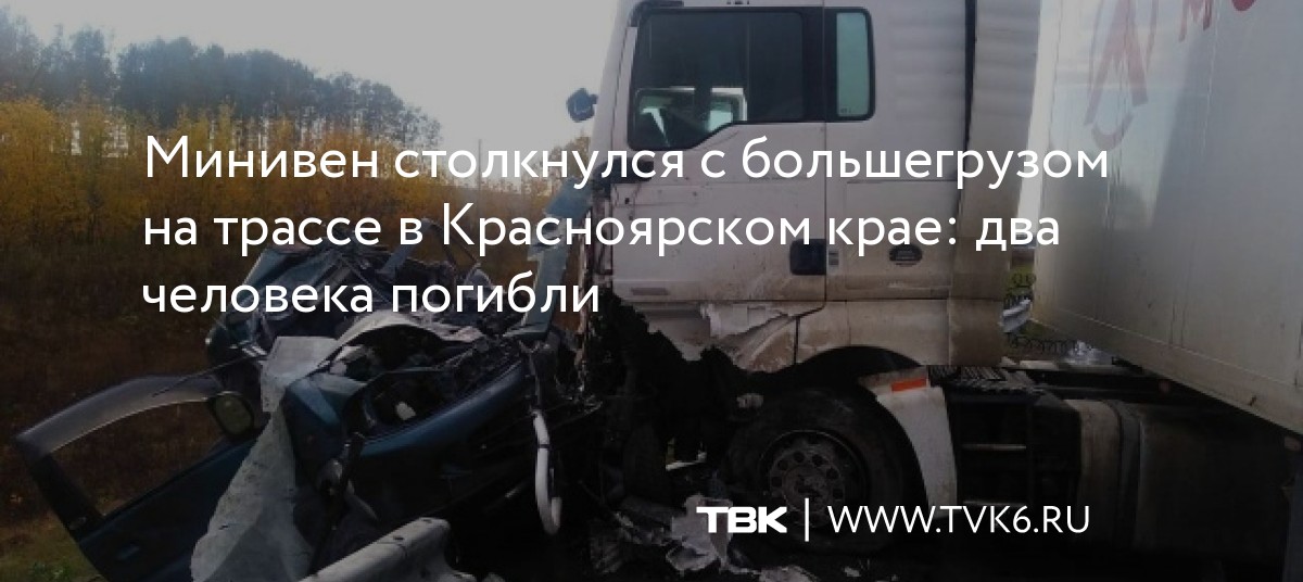 Минивен столкнулся с большегрузом на трассе в Красноярском крае: два человека погибли