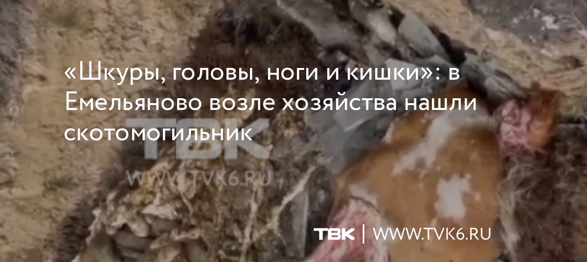 В редакцию «ТВК Красноярск» обратилась Елена из п. Емельяново. Она работает на Конном дворе и во время очередной прогулки по маршруту ее компания наткнулась на вырытую яму. Туда скинули останки сельскохозяйственных животных: шкуры, головы, ноги и кишки.