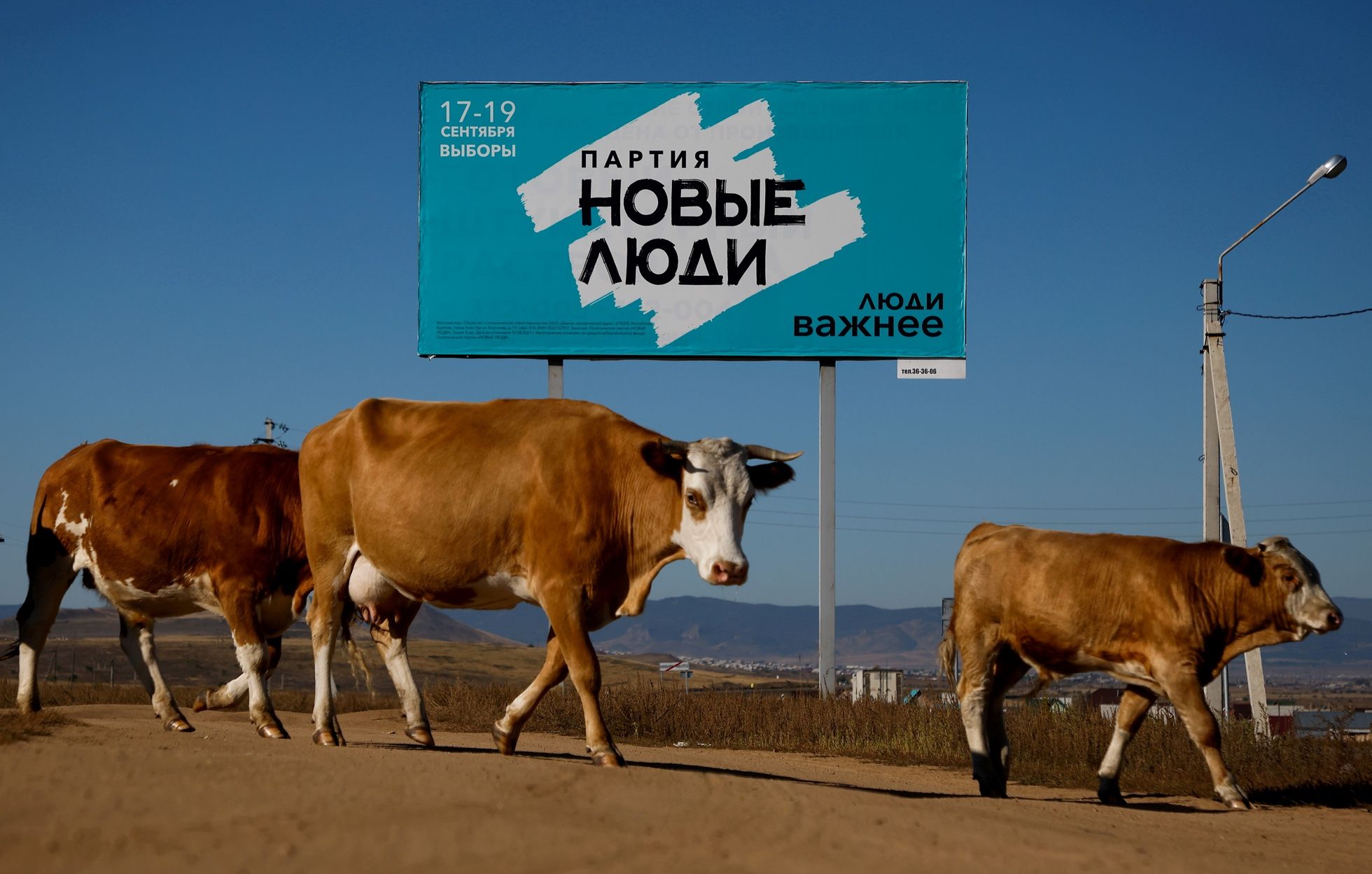 Maxim Shemetov / Reuters / Scanpix / LETA A campaign billboard for the New People outside Ulan-Ude