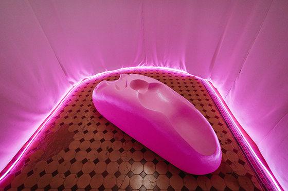 © Анна Марченкова Спецпроект «Создать новый слой» VI Уральской индустриальной биеннале в Тобольске На старинный плиточный пол легло несколько скульптурных форм с приятной на ощупь фактурой и ласкающим глаз цветом, дабы погрузить зрителя в приятное, почти медитативное состояние и призвать к воспоминаниям о том, каким было отношение к прикосновениям до пандемии, когда мир еще не был ограничен социальной дистанцией. Связь с материалами очень понятна локальным художникам, которые в основном работают с народными промыслами, где телесные практики весьма важны. Медитации способствуют ласкающие ухо звуки. Эту инсталляцию тоболяки, надо признать, восприняли с восторгом, что отчасти является хорошим знаком.
