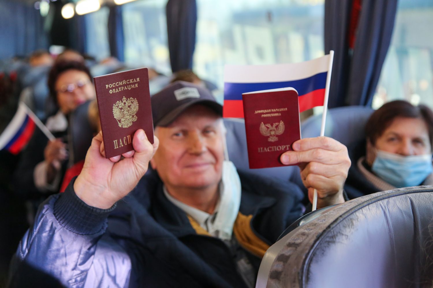 Meduza confirmed this information at the local government services center. The staff said that three buses arrived on Saturday (September 18) and around 100 DNR residents received Russian passports. One of the newly minted Russian citizens holds a passport in each hand — one from the DNR and one from the Russian Federation.