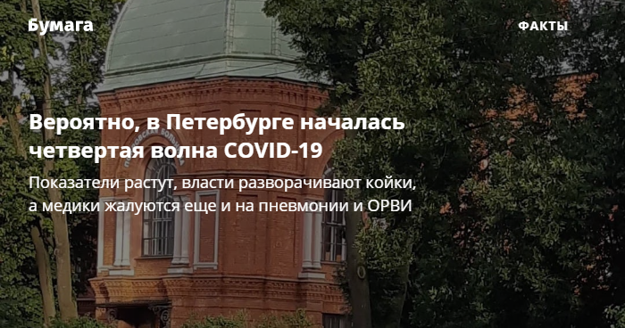 В Петербурге уже месяц растет заболеваемость коронавирусом, число госпитализаций и другие эпидемические показатели. Власти разворачивают новые койки. Врачи подтверждают рост количества ковидных пациентов, но больше жалуются на обычные заболевания. Исследователь считает, что это может быть ранняя стадия четвертой волны коронавируса.