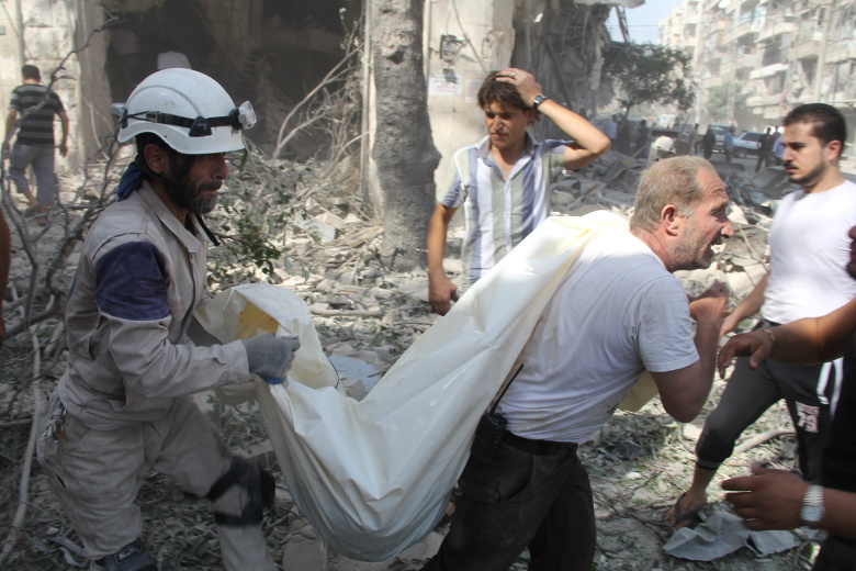 Жители Алеппо после очередной бомбардировки города, 2016 г.