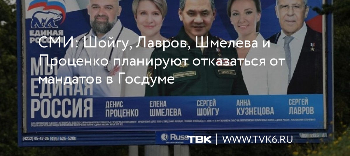 СМИ: Шойгу, Лавров, Шмелева и Проценко планируют отказаться от мандатов в Госдуме