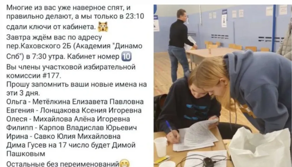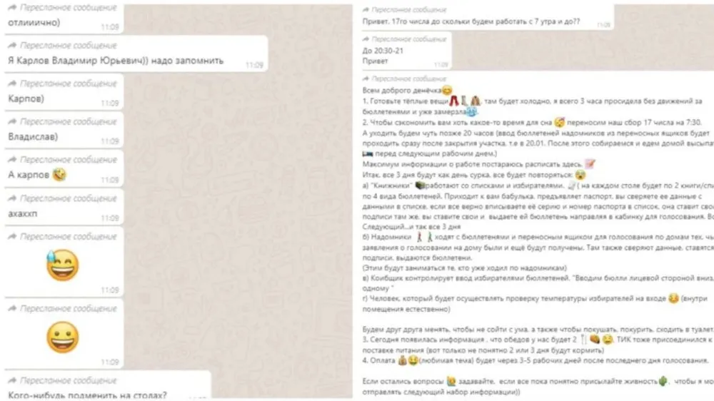 За пару дней до выборов в чате в WhatsApp появилось сообщение председательницы комиссии Марии Мулюк, она добавила туда 11 человек. Всю координацию осуществляла секретарь УИК Анастасия Селиванова, отмечает «Би-би-си».