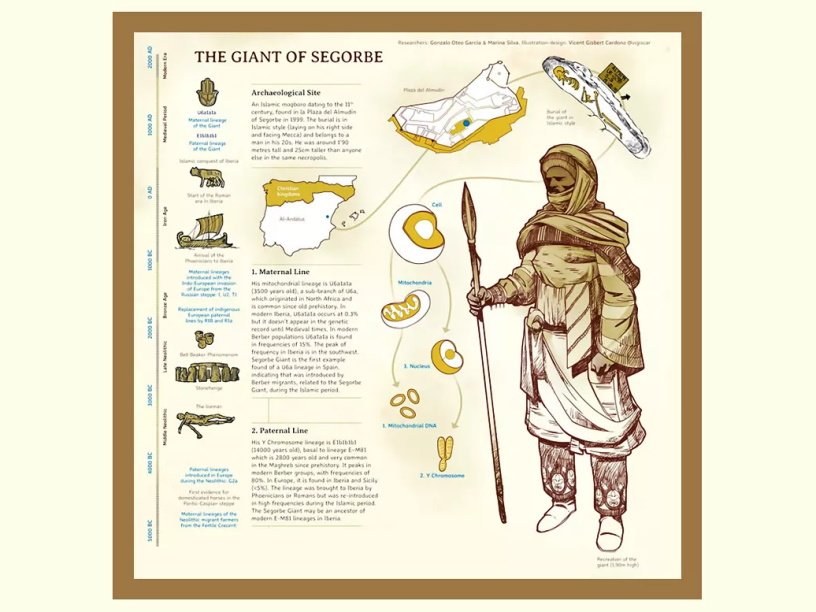 Полногеномная родословная показала, что великан из Сегорбе нес в своих хромосомах значительную часть — вероятно, более половины — местной испанской ДНК. Более того, анализ стабильных изотопов показал, что он, скорее всего, вырос на юге Испании. Следовательно, он принадлежал к оседлому сообществу, в котором были перемешаны местные испанские и иммигрантские североафриканские предки.