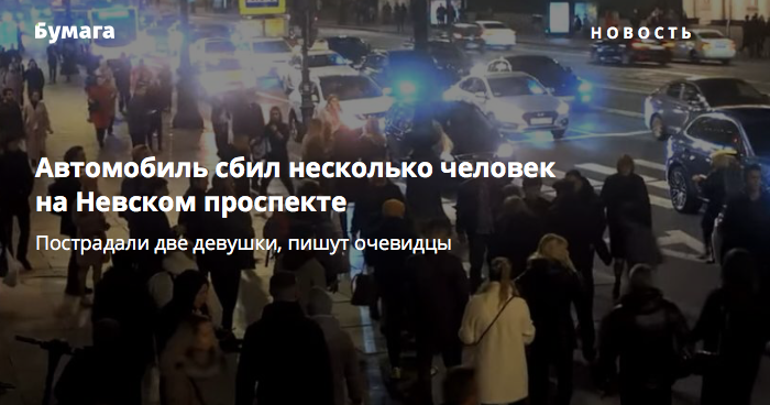 Как говорится в группе «ДТП и ЧП Санкт-Петербург», это не единственная серьезная авария, произошедшая накануне вечером на Невском. Еще одна случилась в начале проспекта, где столкнулись Audi, Lexus и каршеринговый автомобиль, пишут очевидцы. О пострадавших или погибших не сообщается. «Бумага» также запросила информацию об этой аварии в пресс-службе полицейского главка.