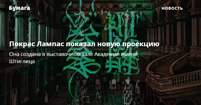 Покрас Лампас показал новую проекцию. Она создана в выставочном зале Академии имени Штиглица