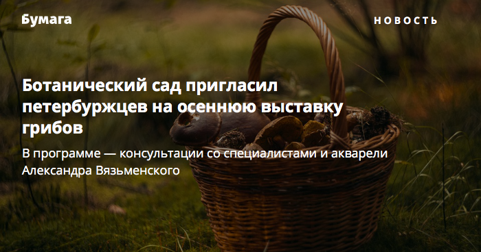 Ботанический сад пригласил петербуржцев на осеннюю выставку грибов. В программе — консультации со специалистами и акварели Александра Вязьменского