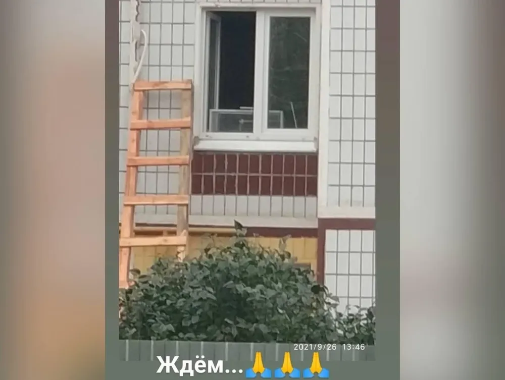Позже хозяйка еще одной оставшейся в доме кошки Нелли Каревская опубликовала фотографию с лестницей, приставленной к зданию.
