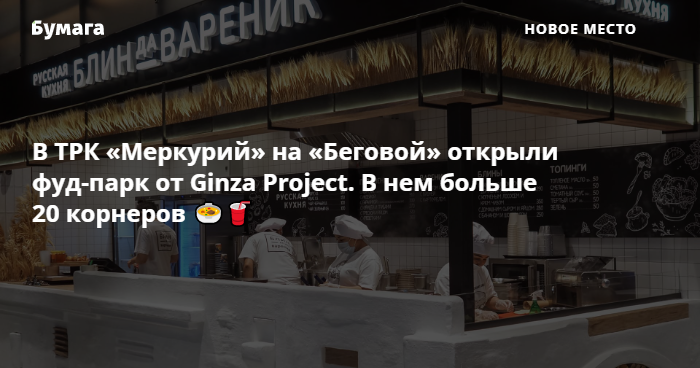 В ТРК «Меркурий» на «Беговой» открыли фуд-парк от Ginza Project. В нем больше 20 корнеров 🍲🥤
