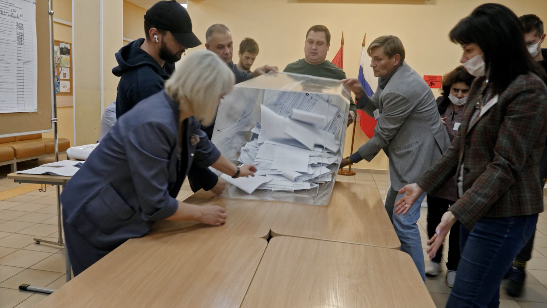 На западе Москвы мы видели, как люди шли на участки и голосовали против лживой политики. Они голосовали против вопиющего неравенства, которое раздирает нашу страну, неравенства, при котором небольшая, жалкая кучка богатеев обладает всем, а обслуживающие их интересы телепропагандисты скупают элитную недвижимость по всей Москве, по всей России, по всему миру. И мы опрокинули это, мы провели кампанию на деньги людей, более тысячи человек дали нам средства, чтобы победить в Западном округе. Мы провели масштабную кампанию, мы вдохновили десятки тысяч людей, и вчера мы победили. Мы победили с огромным отрывом, мы победили во всех восьми районах нашего округа. Мы доказали, что способны сами найти деньги, способны вдохновить соседей, друзей и коллег, что мы способны побеждать.