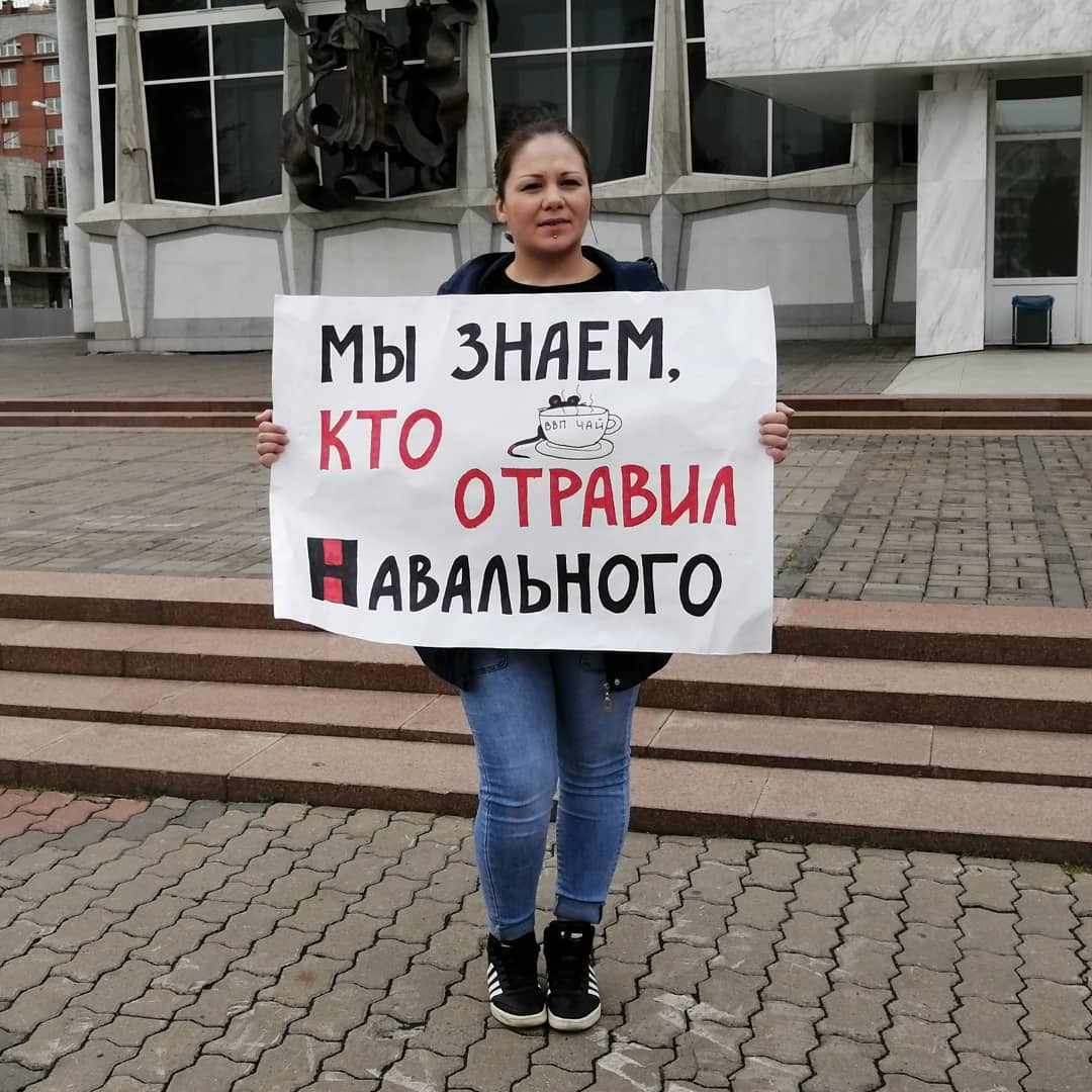 Адвокат Петеримовой Владимир Васин уточняет, что на его подзащитную в красноярской прокуратуре составили протокол по статье о публичном демонстрировании символики экстремистских организаций (часть 1 статьи 20.3 КоАП РФ). Речь о нескольких фото Петеримовой с пикетов: на одном, от 2020 года, девушка держит плакат "Мы знаем, кто отравил Навального" – буква Н при этом написана черным на красном фоне. На втором, 2018 года, – она с плакатом "Есть такая профессия – коррупцию охранять". На нем – два омоновца с дубинками и красно-белая буква Н, а между ними – человечек с лозунгом "Хватит врать и воровать". Третье "экстремистское" фото – это селфи Натальи, сделанное в марте 2021 года на фоне книжного стеллажа. Полицейские разглядели на его полках стаканчик кофе с надписью "20!8" (символика президентской кампании Навального в 2018 году) и конверт с большой буквой "Н". На той же книжной полке стоит и фото самого Навального – но к нему, по словам Натальи, согласно рапорту полицейского Удода, претензий нет.