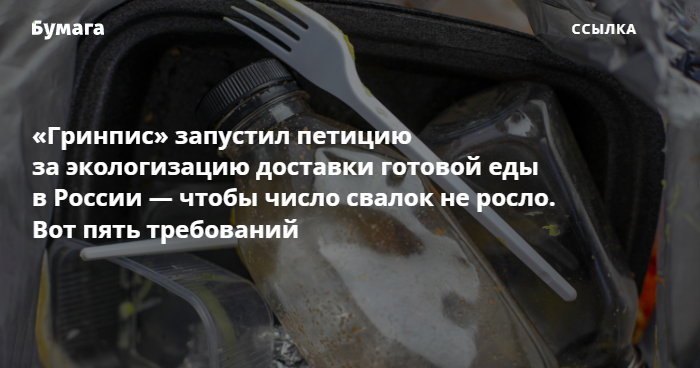 Российское отделение «Гринписа» запустило петицию «Доставка должна быть экологичной!». Об этом «Бумаге» сообщили в пресс-службе организации.