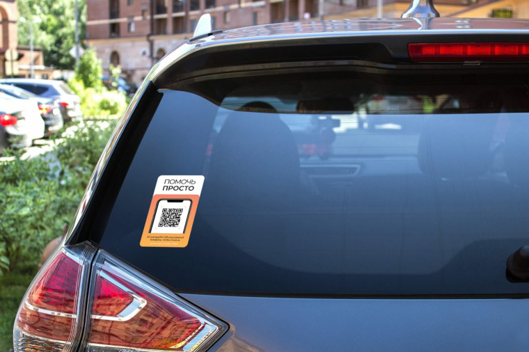 Стикер чаще всего находится «в контексте» — на плакате или ящике фонда. Если стикер наклеен на стекло автомобиля или дверь кафе, скорее всего, людям будет интересно отсканировать код и посмотреть, кому тут «помогают просто».