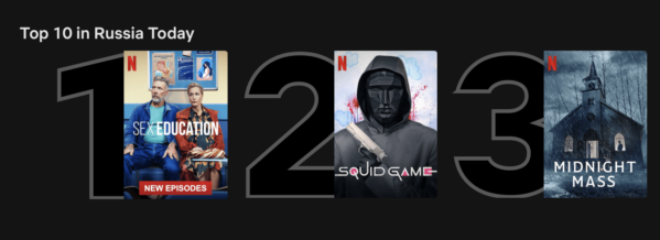27 сентября южнокорейский сериал «Игра в кальмара» (Squid Game) возглавил рейтинг десяти самых популярных шоу в общемировом рейтинге Netflix. Это первый случай, когда корейский проект достиг такого результата на стриминговой платформе, сообщает Korea Times со ссылкой на данные сервиса FlixPatrol. В России он сейчас находится на втором месте в топ-10 сериалов.