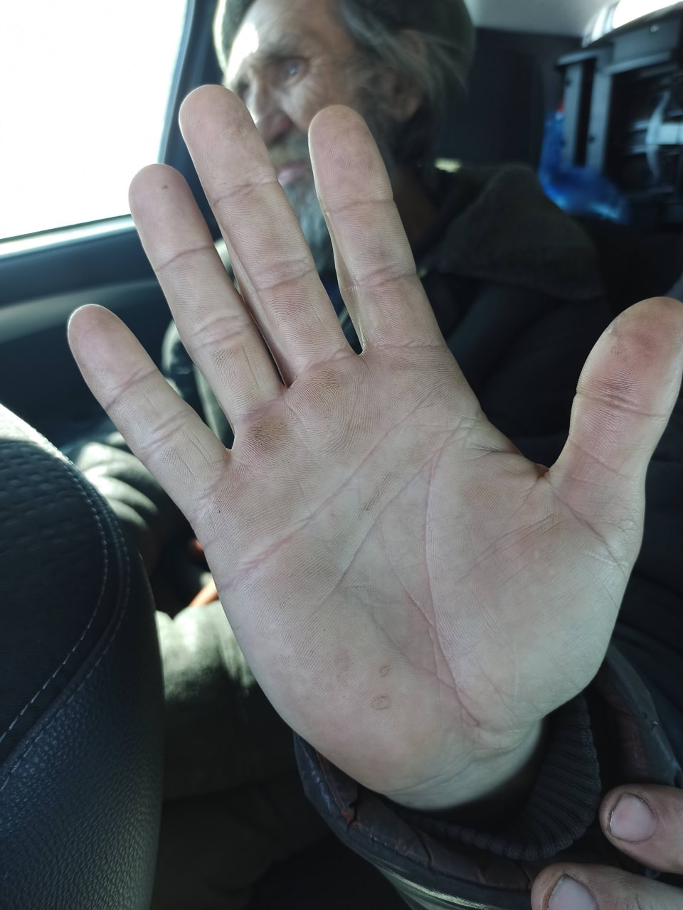 Когда Турсумбаев в очередной раз отказался идти в отдел, полицейские, по словам пенсионера, начали его бить. От сильного удара в спину он упал на пол и не смог подняться — сказалась старая травма бедра, из-за которой пенсионер передвигается с тростью. Потом он услышал жужжание и почувствовал, как руку чем-то обожгло — Турсумбаев уверен, что полицейские ударили его электрошокером.
