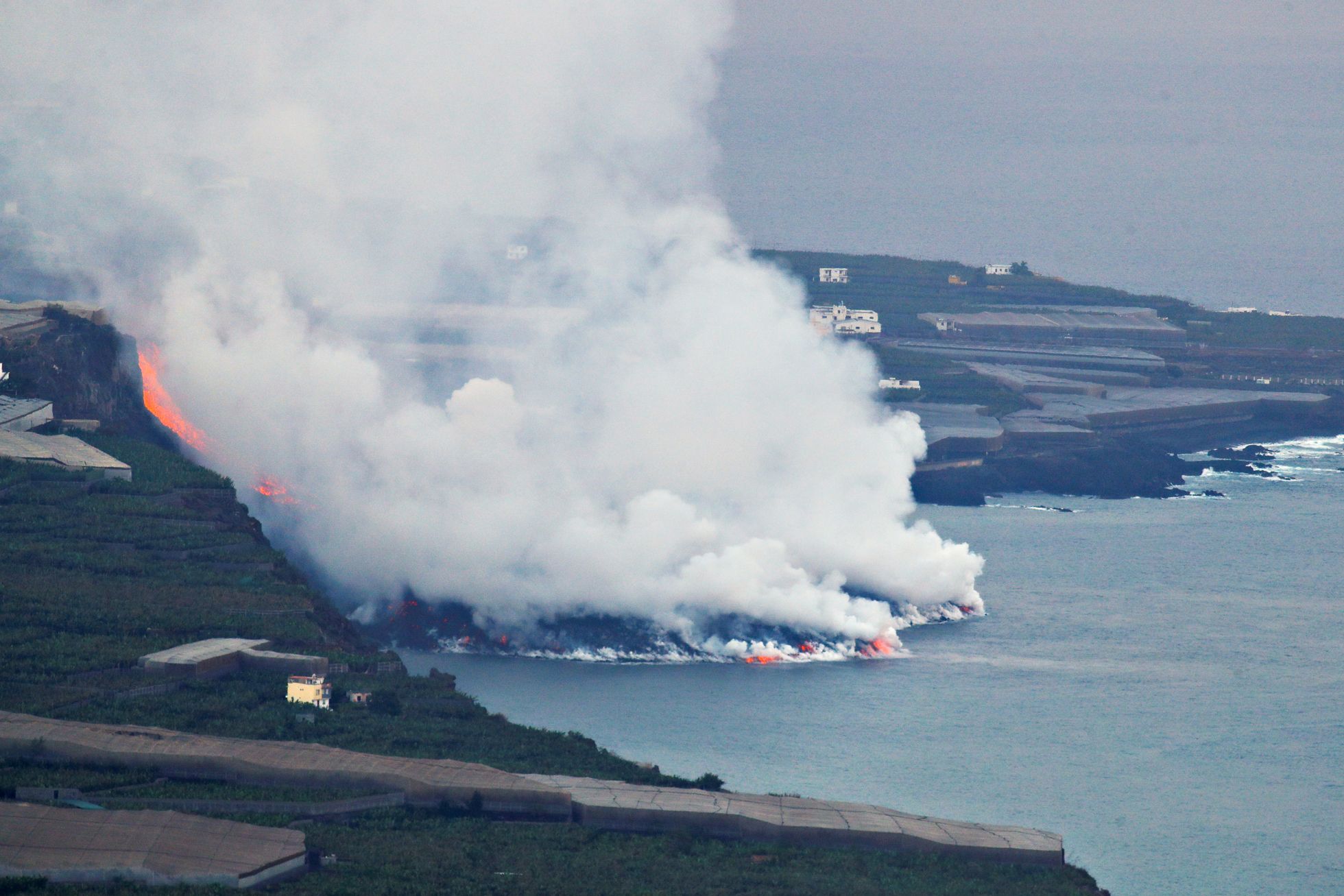 Лава из вулкана на Канарских островах достигла океана. Теперь там образовалось облако с парами соляной кислоты