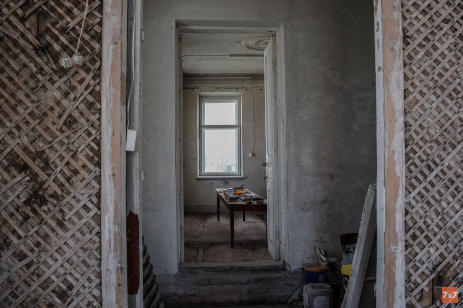 - Расчистка окон. На втором этаже сохранились окна — довоенные, из лиственницы, с красивым рельефом. Они были покрыты несколькими слоями масляной краски, и мы эту краску снимаем. Это нужно делать очень аккуратно, чтобы не повредить рисунок. Трудно. Мне посчитали, на установку новых деревянных окон ушло бы тысяч 700. Мы восстанавливаем старые. Да, уйма времени и сил, но так мы, с одной стороны, экономим деньги, с другой, сохраняем аутентичность. То же самое с дверями.