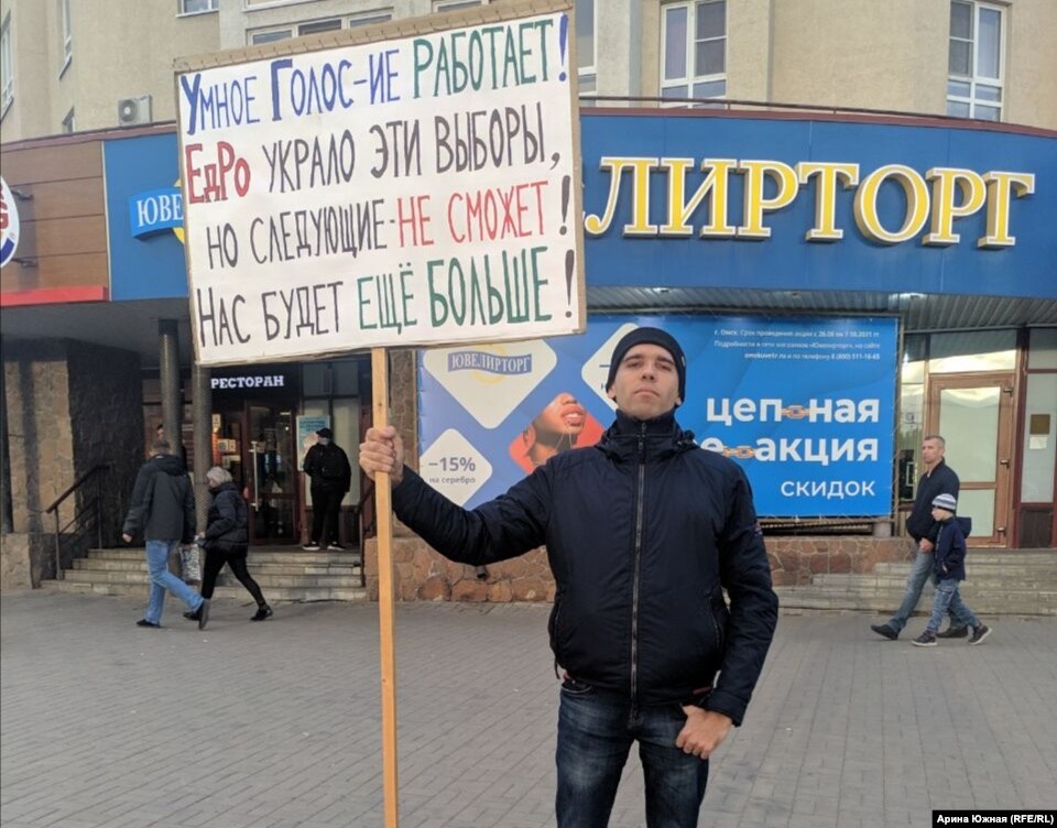 В Омске активист Артем Писаренко вышел на одиночный пикет против кражи голосов на выборах. В руках он держал транспарант с текстом "Умное голосование работает. Омичам по силам победить вбросы и админресурс" и "Едро украло эти выборы, но следующие не сможет. Нас будет ещё больше". Как сообщил протестующий корреспонденту Сибирь.Реалии, на сентябрьских выборах он работал наблюдателем.