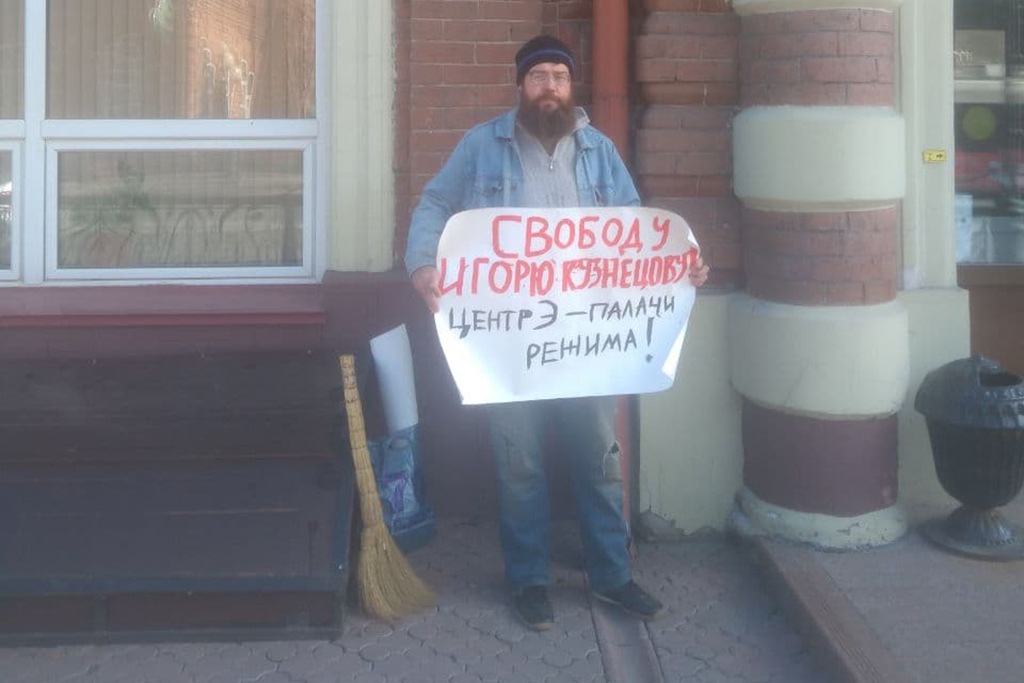 Параллельно с Тюменцевым одиночные пикеты в поддержку Кузнецова провел активист из Новосибирска Андрей Кайгородцев, в отношении которого суд прекратил административное дело о неповиновении полиции. Он вышел с плакатом «Центр Э — палачи режима!» в центре города.