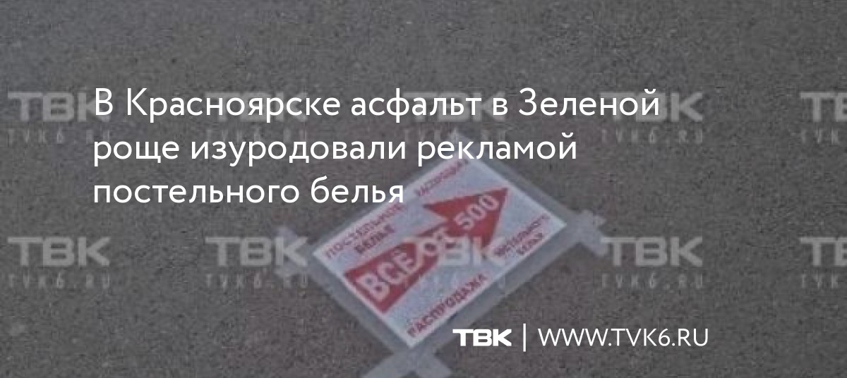 В Красноярске асфальт в Зеленой роще изуродовали рекламой постельного белья