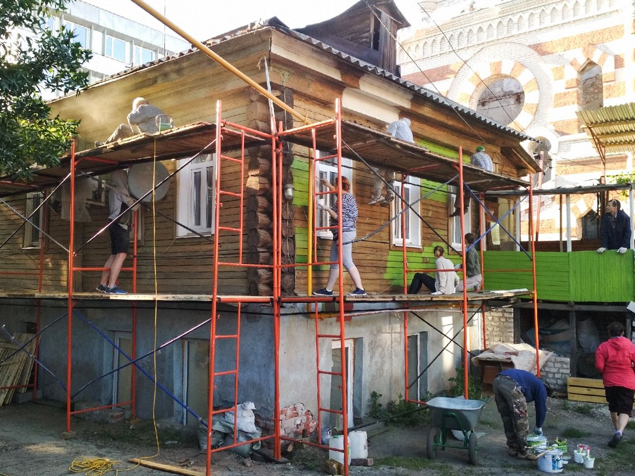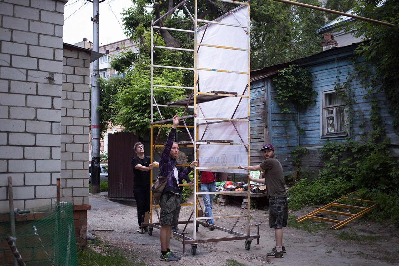 Мы консультировались с профессиональным прорабом, который объяснил, как что переложить, поменять, почистить. Он посмотрел профессиональным взглядом — и периодически контролировал, что мы делаем. В первый год мы восстановили три дома. Фестиваль длился четыре-пять месяцев. К нам пришло около 70 человек, из 15 сформировался костяк. Были люди, которые приходили каждый день.
