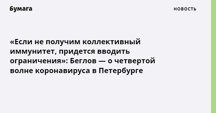 По словам Беглова, эпидемия не закончится, пока не будет достигнут коллективный иммунитет. Губернатор допустил, что, если его не удастся достичь, властям придется вводить ограничения — но никаких сроков называть не стал.