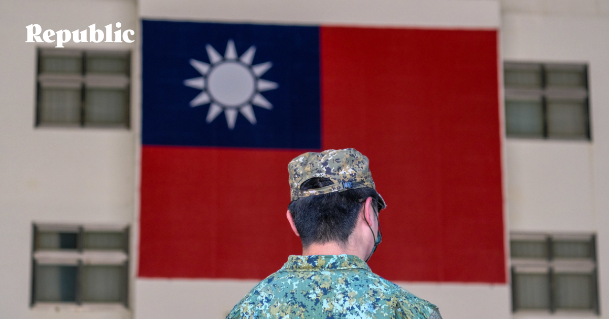 Фасад одного из зданий в Тайбее в канун национального праздника – Дня Республики. На фото – флаг Тайваня: синее небо, белое солнце и совершенно красная земля. Фото: Walid Berrazeg / Keystone / Global Look Press